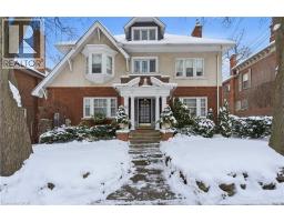 This stately 2.5-stry residence sits on a mature 46’ x 85.33’ lot in Hamilton’s prestigious Durand neighbourhood. Showcasing timeless curb appeal, the front walkway leads to a covered porch framed by Doric columns & an entry door w/ wrought-iron grillwork. Inside, a grand foyer w/ crown moulding, a sweeping staircase & French doors introduces elegant principal rms. The formal liv rm feat a gas FP, an intricate mantle w/ hidden side cabinet, & windows overlooking both gardens. The adjoining din rm impresses w/ built-in cabinetry, leaded stained glass, and rich millwork throughout. The kitchen is a showpiece, featuring heated limestone floors, custom cabinetry w/ beveled glass, marble counters, undercab lighting, pantry, & premium S/S appliances incl a Viking gas range, Sub-Zero fridge, & Miele d/w. Surrounded by windows, it opens to a covered porch w/ a Phantom screen, perfect for indoor-outdoor living. A handy mudroom w/ dbl mirrored closet completes the main lvl. Heading up the main staircase, a landing of stained glass welcomes you to the 2nd level, feat a 25.9’ x 13’ primary suite w/ sitting area, dual closets, & access to a bright den/sunroom (heated flrs). 2 add’l bdrms - one w/ a bay window & ensuite, the other with garden views - plus a 4-pc bath w/ a jetted tub, stained glass, & hand-painted murals complete this lvl. The 3rd lvl offers a private bdrm retreat w/ a 3-pc ensuite, skylights, gas FP, storage, & cozy sitting nooks. The lower lvl adds laundry w/ custom cabinetry, a 2-pc bath, storage & workshop space. Outside, enjoy a private yard w/ a fountain, covered composite porch, retractable awning, gas BBQ hookup, detached garage + surfaced parking for 2 & security lighting. Add feat incl: hardwood flrs, custom window coverings, c/air, HEPA air purifier, a security sys & more. Walkable to the Locke St cafés, boutiques, art galleries, hospitals, GO Transit, parks & trails - Durand offers historic character & an unmatched lifestyle of quiet sophistication. (id:61594)