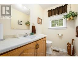 A comfortable country home boasts privacy & space in a well developed sub-division. Enter the welcoming foyer next to a living rm with gas fireplace. Onto the dining rm with patio doors to a lovely sunroom & access to an extensive back yard tiered Trex deck. The kitchen is well laid out beside an adjoining mudroom/laundry with added pantry cabinetry. There is a convenient powder rm & door to the oversized 31 x 2.6 - 2 car garage. As a bonus, there is a large main level bedroom with its own 3-piece ensuite. Great for company of a mother-in-law. Upstairs adds 2 generous bedrooms plus a 4-piece bathroom. The finished basement offers a comfy recreation rm with a second gas fireplace, a bar area, an office area & large utility storage rm with 2 pc. bath rm. Flooring is mix of hardwood, carpet & linoleum. Heated by Natural Gas forced air with air conditioning. Water softener & elec. hot water tank, both owned. Includes the existing natural gas backup 16KW generator. Paved wide driveway. Shingles (2024). Highspeed internet. Gas $1748. Hydro 1526. Taxes currently $3814 /2024. (id:61594)