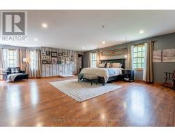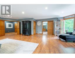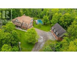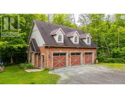 Welcome to "The Headwaters"! Nestled on 50 acres of pristine forest and 6 mile creek, this custom built, 2 storey estate offers the perfect blend of luxury, comfort and natural beauty. From the moment you pass through the gated entrance and travel along the tree lined driveway a sense of serenity will surround you. Whether you're unwinding by the inground pool, basking in the warmth of the wood burning fireplace, every moment here feels like a peaceful escape. As you step inside you're welcomed by soaring ceilings and an open concept design that bathes the home in natural light, creating an airy and inviting atmosphere. The upper level showcases 5 spacious bedrooms and 5 thoughtfully designed bathrooms, including 2 with Jack -and-Jill configurations. A convenient laundry chute adds a practical touch! The primary bedroom is an inviting retreat. Generously sized, this serene space offers a sitting area, a private balcony and the comfort of a gas fireplace. Complete with a 5 pc ensuite and an oversized dressing room style closet! The heart of the home is a grand family room with double doors opening to lush gardens, completed with a rumford wood fireplace.The remainder of the main level is thoughtfully designed offering a spacious dining area with classic French doors, a formal living room with a gas fireplace, a cozy breakfast nook overlooking the gardens and a quiet study with a private entrance. Here you will also find the laundry room, plenty of storage and 2 washrooms. Additional features include an attached double garage and a secondary entrance through the basement. For the hobbyists or those in need of extra space, the detached 2 storey triple garage is fully equipped with 2 wood stoves and is perfect for storing equipment, vehicles, or pursuing your passions! The property invites endless outdoor adventures, whether you enjoy gathering around campfires, exploring trails on your ATV, or snowmobiling through your very own backyard! This home is a timeless beaut (id:61594)