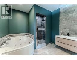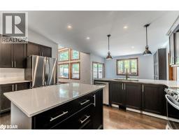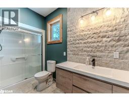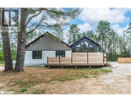 SHOWSTOPPING 2022-BUILT BUNGALOW ON A PRIVATE 1-ACRE LOT WITH A GARAGE THAT IMPRESSES! Set on a private one-acre property surrounded by nature, this remarkable bungalow, constructed in 2022, delivers modern design and quality craftsmanship in a peaceful setting. The striking exterior features stone and siding, peaked rooflines, black-framed windows, soffit lighting, and a large covered front porch finished with a stamped concrete pattern. A true highlight for hobbyists and enthusiasts, the triple-car garage spans over 1,500 sq ft and is heated, insulated, and drywalled, with 12-ft ceilings, LED strip lighting, three 220V welder plugs, 10-ft x 10-ft modern doors, and LiftMaster Wi-Fi openers. Outdoor living continues with a 600 sq ft deck designed for entertaining, complete with a seven-person hot tub, privacy panels, partial fencing, a shed, and a chicken coop. The spacious interior features 9-foot ceilings, hardwood flooring throughout, pot lights, and vaulted ceilings in the great room, which is filled with natural light by floor-to-ceiling windows. The kitchen showcases quartz countertops, an island, a tile backsplash, and newer stainless steel appliances. The primary bedroom offers a private ensuite with a soaker tub, walk-in shower, and dual-sink vanity, while a second full bath and powder room with laundry add functionality. The unfinished basement includes a separate entrance from the garage and a partially completed 3-piece bath, providing an opportunity for future living space. With its close proximity to restaurants, grocery stores, schools, medical services, and parks, and just under ten minutes from downtown Bancroft, this beautiful #HomeToStay combines privacy, modern features, and everyday convenience in one impressive package. (id:61594)