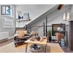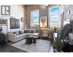 Located at 25 Concession Street in East Galt, just a two-minute walk to the heart of downtown Cambridge, Suite 209 offers easy access to cafés, restaurants, weekend farmers’ markets, the Grand River and more. This loft-style unit offers 1,080 sq ft of interior living space and strikes a balance between industrial character and modern updates. High ceilings with exposed beams and HVAC, combined with stone walls and large north-facing windows, create a bright and open living space. The main floor begins with a spacious foyer featuring a large coat closet, followed by a 2-piece powder room and a separate office/storage closet. The open-concept layout connects the kitchen, dining, and living areas. The kitchen includes custom cabinetry, granite eat-up counter, stainless steel appliances including dishwasher, and space for an island or chef's chopping block for additional prep space. Adjacent to the kitchen is a built-in coffee/bar nook that integrates naturally into the area, with the living room positioned at the end where the warm sunlight floods the space. Upstairs, a den provides flexibility for a home office or guest area. The primary bedroom includes a walk-in closet with two built-in dressers and access to a 4-piece bathroom. There's unique elements throughout the home, such as the distinctive metal door partitioning the primary bedroom with it's unique industrial detail that reflects the building’s character. Additional features include low condo fees, and two outdoor parking spaces. Located within walking distance to the Grand River Pedestrian Bridge, Hamilton Family Theatre, local cafés, restaurants, and weekend markets, this home offers a well-balanced urban lifestyle in one of Cambridge’s most established neighbourhoods. (id:61594)