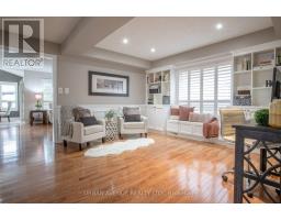 This premium quality-built Halminen 'Waterford' showcases over 2,800 square feet of elegant all-brick living on a desirable south-facing pie-shaped lot. The stunning 4-bedroom home features beautiful hardwood floors throughout the main level and upstairs, complemented by California shutters and custom closet organizers in every bedroom closet. The gourmet kitchen impresses with granite counters, tumbled marble backsplash, breakfast bar, and generous pantry space. The finished basement offers additional living space with a cozy gas fireplace and 3-piece washroom. Quiet back yard with Trex Deck. Furnace (2022), A/C (2022). This immaculate home shows beautifully and is ready for its new owners. (id:61594)