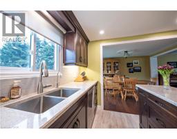 Well maintained 2 storey in a desirable neighborhood with other executive homes nearby! Wonderful curb appeal with a newer metal roof, aluminum eavestroughing & soffits, a spacious stamped concrete driveway & a welcoming front porch - only to mention the front of the home! The back yard is very large and offers stamped concrete walk ways, composite deck, garden shed & nicely landscaped! The interior has had many professional renovations - opening up walls between the L.R. & D.R. & adding pot lights, replacing the bay window, a brand new maple kitchen in 2020, complete w/ceramic backsplash, quartz counter tops, fixed island, stainless steel appliances & luxury vinyl plank flooring. Main floor laundry room with access to the rear deck and a 2 piece powder room. Main floor family room w/wood burning fireplace (not been used by this owner), laminate flooring & sliders to the deck. Hardwood staircase to the upper floor which includes 3 bedrooms, all with hardwood flooring. The primary bedroom has an updated 3 piece ensuite (2023) & the other 2 bedrooms share a 4 piece bathroom. The basement is finished with a rec room, games area w/dry bar & a woodstove that has been disconnected, office, large utility room & cold room. Updated electrical panel - 200 amp., gas furnace replaced in 2007, central air conditioner replaced in 2020, basement windows (2021), garage door openers (2019). You won't be disappointed! (id:61594)