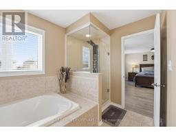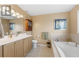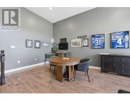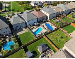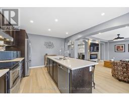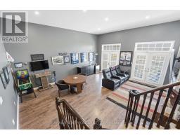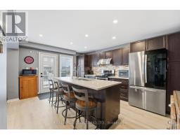 Welcome to this exquisite multi-level side-split home that seamlessly blends elegance, comfort, and functionality. Step into the grand foyer and make your way up to the inviting dining area, perfectly positioned beside the stunning kitchen. Featuring rich dark wood cabinetry, gleaming white countertops, and modern finishes throughout, this kitchen is both stylish and practical. The adjoining living room offers a cozy yet open space, ideal for entertaining or relaxing with family. Ascend to the second level, where you'll be captivated by the spacious family room, highlighted by soaring ceilings and a striking fireplace as its centerpiece. Step out onto the private balcony and enjoy tranquil views overlooking the park-a perfect spot for morning coffee or evening unwinding. The upper level showcases a luxurious primary suite complete with a 5-piece ensuite. Two additional generously sized bedrooms, a beautifully appointed 4-piece bathroom, and a convenient upper-level laundry room complete this floor. The fully finished lower level extends the living space with an impressive recreation room featuring a projector screen, built-in speakers, and a sleek wet bar-ideal for movie nights or entertaining guests. A stylish 3-piece bathroom and a versatile additional room, perfect for a home office or den, complete this level. Every detail of this home has been thoughtfully designed to offer a perfect balance of sophistication, comfort, and modern living (id:61594)