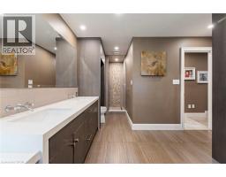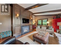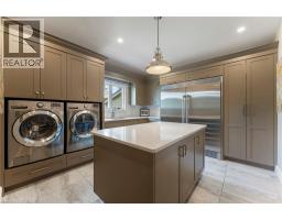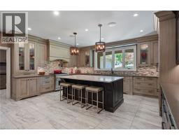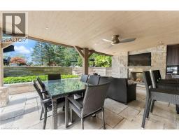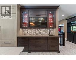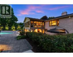 An architectural masterpiece, this exceptional 3 Bedroom, 4 Bath bungalow offers over 5,000 sq ft of refined living space, set on just over half an acre with breathtaking ravine views and protected natural surroundings. Designed with intention and finished to the highest standard, this home seamlessly blends timeless elegance with modern luxury. A covered front veranda with square-cut flagstone welcomes you into a grand foyer where craftsmanship, custom millwork, and designer finishes immediately impress. The main living space flows effortlessly into a stunning solarium, perfectly positioned to capture the beauty of the backyard retreat. The gourmet chef’s kitchen is both sophisticated and functional, featuring quartz countertops, heated floors, steam oven, warming drawer, microwave drawer, and an undercounter double-drawer refrigerator. The private primary suite offers two custom walk-in closets and a spa-inspired 5 piece ensuite. A separate wing provides two additional bedrooms, a dedicated office, 4 piece bath, and a well-appointed mudroom and laundry area with custom storage and access to the double garage with epoxy floors and separate basement entry. The lower level is designed for entertaining and relaxation, complete with a spacious family room with gas fireplace and walkout, games room, 3 piece bath, and ample storage. Outdoors, a true resort-style setting awaits. The covered kitchen is a showpiece with granite counters, wet bar, fridge, dishwasher, built-in BBQ, side burner, and gas fireplace. A sunken patio leads to a resurfaced, heated concrete saltwater pool, complemented by a TREX deck, hot tub, invisible fencing, and a full irrigation system. Surrounded by LPRCA lands, this property offers unmatched privacy. A rare offering where luxury, lifestyle, and nature come together. (id:61594)