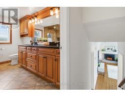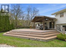 A home should feel as good to live in as it looks, and this one delivers exactly that. Welcome to 25 Victor, a well-cared-for sidesplit that offers a smart, functional layout designed for real life. The split design naturally separates each level, giving you defined spaces without feeling closed off, and keeps stair runs shorter and more manageable than a typical 2-storey. On the entry level, a flexible bonus area works perfectly as a family room, office, playroom, complete with a two-piece bath and direct access to both the backyard and attached garage. The main floor is bright and inviting, with large windows filling the living and dining areas with natural light, anchored by a fireplace that adds warmth and character. The kitchen blends style and practicality with caramel-toned cabinetry, ample storage with in-cabinet lighting, granite countertops, reverse osmosis, and a walkout to the deck for easy indoor-outdoor living. Upstairs, the primary bedroom features a walk-in closet with built-ins, alongside a second bedroom with integrated desk space and a standout main bath finished with heated floors, a jacuzzi tub, glass walk-in shower, and double-sink granite vanity. The lower level adds even more usable space with a 3rd bedroom featuring updated flooring (2022) and a second fireplace. This floor also features a 3-piece bath and a versatile laundry/storage area. Outside, the backyard offers a private, tree-lined retreat with multiple spaces to relax or entertain, including a large deck, pergola, gazebo, and fire-pit area overlooking a pond, all set within the open green space. Adding even more value, the yard also features an irrigation system and is fully fenced, complete with a shed offering hydro and a built-in workspace. Conveniently located minutes from Brock University, The Pen Centre, excellent schools, parks, trails, restaurants, shopping, and quick access to Highway 406 and the United States border. (id:61594)