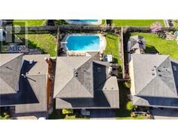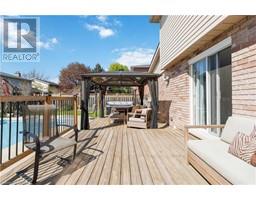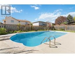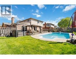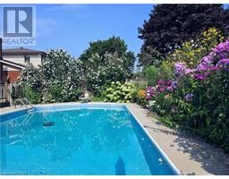 Welcome to the mature and sought after Pioneer Grove neighbourhood, known for its stately and charming Executive Homes, of which 25 Winter Way is a shining example. This 2 Storey, 3 bedroom, 1.5 Bath brick home features stunning gardens that surround an in ground pool as well as a hot tub. The main floor features upgraded hardwood flooring throughout the formal living and dining room as well as the family room where you will also find a cozy gas fireplace and a vaulted ceiling with a skylight affording an abundance of natural light. The kitchen is well appointed with newer stone countertops and includes the fridge, stove and newer dishwasher. Walk out to a 2 tiered deck and spend the summer months in a beautiful, heated, roman style inground swimming pool complete with walk in steps with heated jets, fibre optic lighting and a new textured non slip pool liner (2021). A Polaris robotic cleaner (new in 2018) and a fitted winter safety cover are also included. The backyard definitely qualifies as an 'Oasis' for outdoor entertaining, relaxing and enjoying family time and also features a 6 person Hot Tub. The second storey is home to 3 generously size bedrooms including the primary bedroom featuring 2 double closets. The main bathroom has been fully renovated in recent years with porcelain flooring, a modern soaker tub and separate shower. New asphalt driveway in 2021, 2nd storey windows in 2013, Washer & Dryer (2022). This home is a must see and a delight to tour!!! (id:61594)