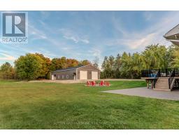 10 Acres with Incredible Workshop & Charming Brick Bungalow! Large 5000 SQ. FT. Detached Workshop is ideal for car enthusiasts, truckers, contractors or anyone craving additional space and privacy. This property is a rare opportunity offering both a comfortable home and a massive workshop -aprofessionally engineered structure with 16 ft ceilings, equipped with a 200 amp service andfeatures 3 oversized 14' by 14' garage doors, 1 additional 10' 12' door, and 2 metal mandoors. Endless potential for storage or hobby use. The interior of the home features 3spacious bedrooms floor plus 3 fully renovated bathrooms on the main level. Open-conceptfamily room with electric fireplace, pot lighting and hardwood floors. Generous kitchen withcenter island, breakfast bar, and large eating area with walk-out to deck. Partially finishedlower level with additional bedrooms, 4-piece bathroom and flexible space to create a largerecreational room, games area, or home gym with separate entrance via garage. Professionallylandscaped with garden beds, composite deck and flagstone firepit area. Huge approx. 1200sq.ft. aggregate concrete patio-perfect for entertaining. Interlock front walkway with 80mmpavers. Chicken coop with run & power plus goat pen with coop- ideal for a mini hobby farm.Attached double car garage and expansive asphalt driveway with ample parking for multiplevehicles. Great location, approximately 15 minute drive to highway 400! Whether you arelooking for peaceful rural living or need a property with a serious workshop space, this oneof-a-kind bungalow checks all the boxes. Don't miss your chance to make this exceptionalproperty yours! Workshop can be used to generate income, can be usedto store boats, Rig's or cars! A rare find! (id:61594)