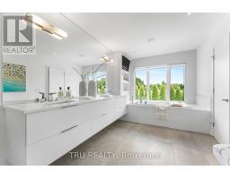 Absolutely one of a kind- experience the extraordinary in the heart of Bridlewood. This fully customized Borden model is a home unlike anything else in Kanata, where luxury, sophistication, and comfort reach a level rarely seen.Set on an oversized lot with over $330,000 in premium upgrades, this property isn't just a house-it's a statement. From its striking curb appeal to its modern architectural lines, every detail reflects one of the most distinguished homes in Ottawa.Inside, a sun-filled open-concept layout with pristine hardwood floors flows seamlessly into a true chef's kitchen-a masterpiece featuring a massive island, built-in ovens, an induction cooktop, and a dedicated coffee station, all designed for elevated entertaining.The living room impresses with soaring two-storey ceilings, a dramatic floor-to-ceiling tiled feature wall, and a sleek linear gas fireplace with integrated media-creating a space that is both refined and unforgettable.Upstairs, the primary suite offers a spa-inspired retreat, while three additional bedrooms each feature their own ensuite, delivering comfort and privacy for family and guests alike.The fully finished basement extends the living space with a fifth bedroom, a full ensuite, and a stunning home theatre-perfect for hosting and unwinding in style.Step outside to your private backyard sanctuary, complete with Premium Mega Melville XL slab interlock, a 5-ft in-ground pool, and mature cedar trees, offering a serene, low-maintenance escape.This is more than a home-it's an unparalleled luxury residence in one of Ottawa's most sought-after communities. (id:61594)