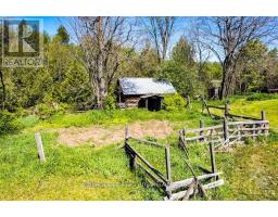 This property presents a unique opportunity for those with a vision to create their dream country retreat amidst picturesque surroundings. Located on an 11-acre lot in Ompah, this 3-bed, 1-bath home offers immense potential to be transformed into a charming haven with a little bit of TLC. Enter through the 4 season screened in porch featuring a wood stove to enjoy the space year round. Open concept eat in kitchen with endless potential. Large living room has direct access to the back yard through the attached porch. Outside find two detached garages with hydro, one with a loft for extra storage. An expansive 80x40 barn is situated 475 feet from the pond, perfect for livestock or equipment storage. Certain fields on the property have been fenced, making it ideal for farming. Close to Cruse Bay and Canonto Lake, providing easy access to recreational activities and natural beauty. 25 minutes to Ardoch (id:61594)