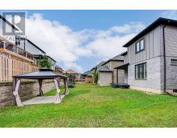 Welcome to this modern, energy-efficient, freshly painted, and move-in-ready home tucked away on a quiet, family-friendly street. With a sleek gray stone and brick exterior, a striking black front door, and a double-car garage, this home seamlessly blends contemporary style with everyday functionality. Inside, you're greeted by a bright, open-concept layout with an impressive floating staircase, designed for both comfort and entertaining. The front powder room is perfectly positioned for guests, while the spacious living area features a fireplace for cozy evenings. The kitchen is a true highlight featuring beautiful quartz countertops, a center island which house an under-the-counter microwave to maximize workspace, and a generous eat-in dining area leading outside to enjoy your walk-out deck, ideal for outdoor dining or morning coffee, and a gazebo nestled at the back of the lush lawn; your private escape after a long day. The entire home is carpet-free and upgraded with California shutters on the main floor for a clean, elegant finish. Convenient garage entry is located through the main floor laundry room, adding ease to your daily routine. Upstairs, you'll find three large bedrooms, including a serene primary suite with a glass walk-in shower, soaker tub, and double sinks for a spa-like experience. The second full bathroom is a functional Jack and Jill design, perfect for busy family mornings. Downstairs, the fully finished basement offers incredible flexibility. It includes a spacious fourth bedroom with large windows and natural light, a barn door to separate the oversized bedroom from the cozy rec room, and ample space for guests, in-laws, or a potential rental suite. This home combines modern upgrades, thoughtful design, and family-friendly features in one exceptional package. Don't miss your chance to make it yours. This House is Virtually Staged. (id:61594)