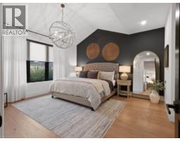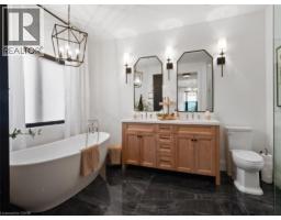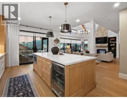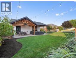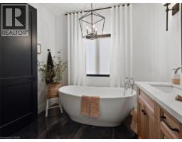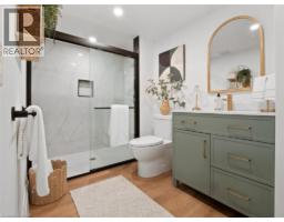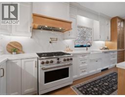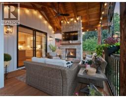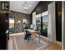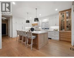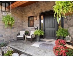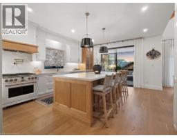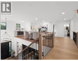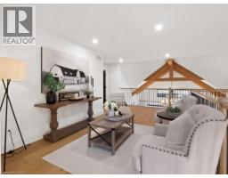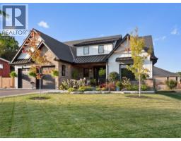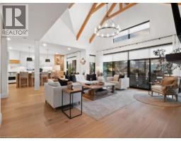 Welcome to this custom-built bungaloft blending timeless craftsmanship with modern luxury. From the moment you arrive, the landscaped lot, post-and-beam porch with cathedral ceiling and stone accents on the Smart Side exterior make a striking impression. Step inside through the widened front door to 9-foot ceilings and wide-plank engineered hardwood flooring flowing throughout. At the heart of the home is the great room with 12-foot vaulted ceilings, exposed Douglas fir beams, a two-sided glass gas fireplace and a 16-foot wall of sliding doors opening to the backyard oasis. The gourmet solid-maple kitchen showcases paneled top-tier appliances, farmhouse sink, pot filler, matching quartz counters/backsplash and an oversized island with storage on both sides. Built-in cabinetry extends into the office and laundry, where quartz surfaces and upgraded lighting echo the kitchen’s quality. The primary suite offers a cathedral ceiling and spa-inspired bath with heated porcelain tile floors, extra-large standalone tub and double vanities. Solid-core 8-foot doors on both levels enhance privacy. A bright loft overlooks the great room and captures escarpment views. Outside, entertaining zones include two fireplaces, gas under the covered porch off the kitchen and electric in the yard plus a gas hookup for grilling. The separate garage with new siding, shingles and roof includes a workshop large enough for a car. Additional highlights: tankless water heater, air exchanger, full ZIP-system exterior, front-yard sprinkler, alarm and a six-car driveway. The remodeled basement adds two bedrooms, a bathroom and a vestibule, extending the five-bedroom, four-bath layout. This one-of-a-kind property pairs exceptional construction solid maple cabinetry, poplar trim, standing-seam metal roof accents with thoughtful touches like Wi-Fi blinds, closet lighting and a storm-water easement ensuring easy pool access. Every feature speaks to quality, and comfort. (id:61594)