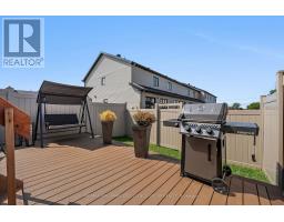 Welcome to this stunning middle-unit townhome, showcasing pride of ownership and quality upgrades throughout! Elegant hardwood flooring graces both the main and second levels, complemented by an upgraded hardwood staircase and beautiful architectural mouldings. The bright, open-concept main floor features a stylish kitchen with cabinets extended to the ceiling, quartz countertops, upgraded lighting, and quality stainless steel appliances.Upstairs, you'll find three spacious bedrooms, including a generous primary suite with elegant wainscoting, a walk-in closet, and a luxurious main bathroom with a soaker tub and separate walk-in shower. The fully finished basement offers additional living space-perfect for a family room, home office, or gym-and includes a rough-in for a future bathroom.Enjoy outdoor living in the fully fenced backyard with a composite deck, ideal for entertaining. The furnace and air exchanger are owned (not rentals); only the hot water tank is rented.Spotless and beautifully maintained-this home is truly a pleasure to view! 24 Hours Irrevocable on all offers. (id:61594)