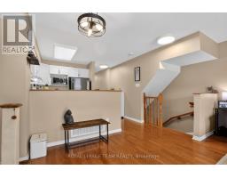 This is the one you've been waiting for. A sunny, end-unit stacked townhouse that lives large - offering two bedrooms, two baths, including a main-floor powder room, and a versatile Den that adapts effortlessly to your lifestyle. Work from home in style, set up a kids' play zone, or create the quiet retreat you've always wanted - all just steps from the front door. The open-concept main floor is designed for real living. A contemporary white kitchen anchors the space, flowing seamlessly into bright, generous living and dining areas finished with rich hardwood and crisp ceramic tile. Natural light pours in - one of the many perks of being an end unit. Step out onto your covered rear balcony for morning coffee or evening BBQs, with leafy views that offer an ideal outdoor area to enjoy. On the lower level, two bright and comfortable bedrooms provide a peaceful retreat, with high ceilings. The primary bedroom features double closets. The thoughtfully designed main bath features a cheater ensuite with doors off both the hallway and the primary bedroom - a small detail that makes everyday living noticeably smoother. In-unit laundry adds the kind of convenience today's buyers expect. Every surface has been refreshed - newer broadloom on the stairs and lower level, fresh paint throughout, and updated light fixtures that give this home a clean, move-in-ready feel. It truly sparkles. Outside, you'll appreciate the covered entry, dedicated parking with a visitor spot conveniently right beside it, and a tidy BBQ and garbage storage area at the rear. Practical, polished, and perfectly positioned in a walkable, connected neighbourhood where everything you need is within 15 minutes on foot. Quick access to public transportation for an easy commute into the city. Homes like this don't last. (id:61594)