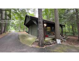Muskoka in Grand Bend featuring a one acre beautiful private estate boasting a long meandering driveway through the forest in a natural setting backing on to the Old Ausable Channel. A circular driveway welcomes you to a lovely 1 PLUS 1 bedroom, 2 bathroom SMALL bungalow with a covered porch. Enter into a charming quaint classical novel like home with two car attached garage (22.9 X 23.8) and separate 2 car detached garage/work shop. This home was renovated in 2012 which included some new ceilings, floors, electrical, furnace, new kitchen, granite island, stainless steel appliances and a pantry. A new railing to the sunken great room which features a massive brick fireplace with built in bookshelves. The primary bedroom boasts a door to a deck for enjoying your morning coffee! A large main floor bathroom and closets provide great storage. Off the dining room is a door leading to the rear deck and huge natural backyard. Downstairs is only partial basement with is a bathroom, bedroom, laundry. Extra insulation in the crawl space. The shop is 400 sq. ft. fully insulated with a gas heater, custom built benches & drawers & concrete floor. This property has so much potential for nature enthusiasts. Build a deck at the Channel to launch your canoe. This perfect location is walking distance to all of Grand Bend's amenities. Truly a rare offering. Fireplace has recently been painted white and it looks amazing! (id:61594)