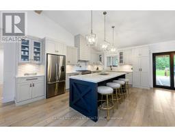 Nestled in the tranquility of the countryside, this custom-built Bungalow offers over 5,000 square feet of finished living space, uniting refined luxury with the warmth of country living. With 6 BEDROOMS and 4.5 BATHROOMS, this home has been thoughtfully designed to accommodate both everyday family life and grand-scale entertaining. You are greeted by soaring ceilings, expansive windows, and wide plank white oak flooring that set the tone for timeless elegance. At the heart of the home lies a CHEF'S KITCHEN, complete with high-end appliances, custom cabinetry, and a generous island. Open-concept living and dining areas flow seamlessly, filling the home with light and offering effortless connection to the outdoors. The primary suite is a private retreat, with a spa-inspired ensuite and 2 large walk-in closets. Additional bedrooms provide comfort and flexibility for family and guests alike. The fully finished lower level offers endless possibilities for recreation, fitness, or a media lounge. A tandem garage featuring a drive-through to the backyard makes for easy access and extended vehicle storage. Plus, a large detached garage provides ample space for a workshop, additional vehicles, or storage. Outdoors, the property continues to impress with expansive grounds designed for relaxation and entertaining. Whether it's quiet mornings on the covered porch, or evenings gathered under the stars, this property delivers a lifestyle as remarkable as the home itself. Ideally located, just minutes from local amenities, major highways, golf courses, trails and charming farms with fresh local produce. This estate is more than a home-it's an experience of luxury, space, and serenity in the heart of the country. Luxury Certified. (id:61594)