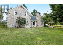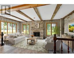 Tucked along a quiet bend of the Tay River just ten minutes from Perth, this 73-acre estate is the kind of property that almost never comes up. An 1870s stone home, an 1820s log guest house, over 1,200 feet of natural swimmable shoreline, and total privacy at the end of a long private drive with no neighbours in sight. The stone home stands with quiet dignity, its original pine floors and historic millwork carrying the story of generations. Behind that character sits the practical stuff that matters: a brand-new septic system installed this year, propane furnace, updated wiring and plumbing, newer windows on the upper level, and added insulation. Generously sized rooms, a large wood-burning fireplace, and a clean, dry basement give the main house real bones. With 5 bedrooms and 1.5 baths, there's space for the whole family, even if you convert one of those bedrooms into a luxurious spa bathroom. The kitchen and dining room and the unfinished primary bedroom are blank canvases waiting for your vision. Outside is where this home really opens up. Forest and field roll out in every direction, dotted with apple trees and wild berry bushes. Launch a canoe from your own shoreline and paddle 2.5 km into Christie Lake. A boathouse sits right at the water ready for restoration. An 1825 barn with massive hand-hewn beams waits to be reborn, and the rustic log cabin with a screened porch and charmingly wonky floors makes a perfect guest house, summer retreat, or short-term rental opportunity. Just over an hour from Ottawa with easy access to Highway 7. Vibrant in summer, hushed under winter snow. A private world where time slows and history breathes in every stone, beam, and ripple of the river. Book your private tour today. (id:61594)