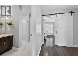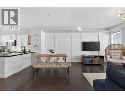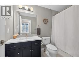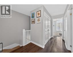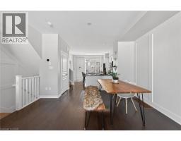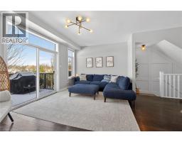Ideally located in the heart of Waterdown, this refined 3-bedroom, 2.5-bath residence offers walkable access to shops, dining, parks, and downtown amenities, with seasonal highlights right outside your door. The entry level features direct garage access, a full bath, a versatile bedroom or office, and a walkout to a private patio. The main living level showcases custom millwork, plank flooring, a designer powder room, pantry, and an elegant kitchen with breakfast bar. The sunlit living space opens to a secluded, tree-lined deck—perfect for quiet mornings or evening unwinding. Upstairs, two spacious bedrooms include a well-appointed primary with custom built-ins, a statement feature wall, and semi-ensuite access. A generous main bath and convenient laundry complete the home. The unfinished lower level offers excellent potential for additional living space. A rare opportunity to enjoy style, comfort, and convenience in one exceptional location. (id:61594)