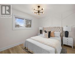 This luxurious boutique bungalow featuring 3+2 bedrooms and 2 bathrooms, with a fully finished basement, has just hit the market in a sought-after neighbourhood of St. Catharines. This gorgeous, fully upgraded home boasts brand-new high-end renovations and sits on a large, spacious corner lot with brand-new fencing. From the moment you step inside, you will fall in love with the upgrades throughout. The main level offers a very spacious open-concept layout, high-end tile flooring in the foyer and kitchen, luxury vinyl flooring, and upgraded chandeliers and light fixtures throughout. The bright and inviting living room features a stunning accent wall with an electric fireplace and is filled with natural light all day long. The heart of the home is the beautiful two-toned kitchen, complete with ample cabinetry, quartz countertops and backsplash, a waterfall island, brand-new stainless steel appliances, and elegant gold accents. The dining room provides direct access to the fully fenced backyard and a small deck. The upper level includes three bedrooms, with the spacious primary bedroom showcasing a stylish accent wall. The luxurious 4-piece bathroom features floor-to-ceiling high-end tile, a brand-new quartz vanity, and a new tub and tiled shower. The fully finished basement, with a separate entrance, offers two spacious bedrooms, a large recreation room, a luxurious 3-piece bathroom, and a beautiful wet bar with a feature wall, adding a premium touch to the space. The basement also has excellent potential to be converted into an in-law suite if desired. Recent upgrades include a new roof (2019), furnace (2019), owned hot water tank, and improved attic insulation. This exceptional location offers tennis courts and a community soccer field directly across the street, with close proximity to the Bruce Trail and Twelve Mile Creek trails, the Pen Centre, and Brock University. (id:61594)