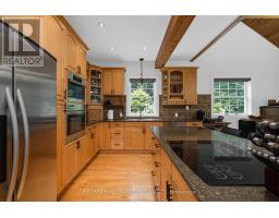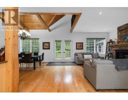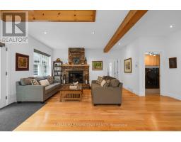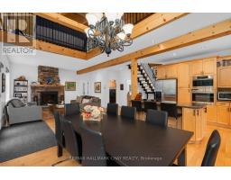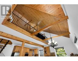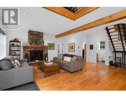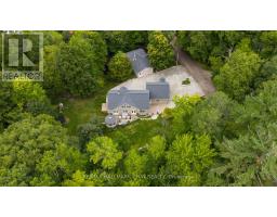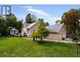 Welcome to 26 Eleventh St in Midland, situated in an incredible park-like setting with your own pond, surrounded by mature trees on over 2 acres. Minutes from historic shops and dining in downtown Midland, from the shore of Georgian Bay, and an abundance of all season trails for the nature enthusiasts. This residence offers architectural flare and unique finishes throughout - warmth of natural wood details, natural light via upgraded window package - attention to form and design at every turn. Large family? Home business? Extended family? Frequent guests? There is no shortage of functional living space with 6 bedrooms, 4 bathrooms, 2 kitchens, 2 laundry rooms, loft space above garage, above grade lower level, multiple entrances and an abundance of garage space and parking. Open concept floor plan - kitchen, living room, dining room. Custom kitchen features granite countertops, cooktop, double wall oven, food steamer, s/s appliances. Dining room large enough for hosting festive meals. Great room with soaring 15' tongue/groove ceilings, feature wall with gas fireplace and stone mantle. Main level walk out to beautiful deck, privacy offered by the mature tree canopy. Convenience of primary bedroom on the main level with stunning renovated 5pc ensuite - glass walled shower, double sink vanity, quartz countertop, heated floor. Look up - incredible loft space provides additional living room, bedrooms, bathroom - complete with upper level balcony. Full finished lower level (new lighting) with walk out/separate entrance - bedrooms, kitchen, laundry, rec room - set up perfectly for multigenerational family or guests looking for some private space. Above grade windows bathe this additional living space with natural light. Gather around the gas fireplace to warm up on cool evenings. Step outdoors to appreciate FIVE garage bays, an abundance of parking for cars, work vehicles, RVs and more. Additional 1 acre of beautiful, mature, forested property is included! (id:61594)