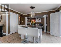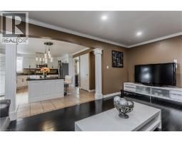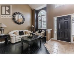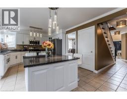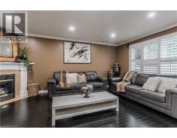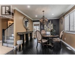 Nestled in a sought-after Glanbrook community, this exceptional family home offers the perfect blend of comfort, space, and modern elegance — backing onto lush green space for added privacy and tranquility. Surrounded by mature trees and beautifully landscaped gardens, its inviting curb appeal sets the tone for what awaits inside. Located in a family-friendly neighbourhood near top-rated schools, parks, and convenient highway access, this home was designed with growing families in mind. Step inside to a bright, open-concept main floor highlighted by hardwood flooring and California shutters throughout. The living room impresses with soaring vaulted ceilings, while the formal dining room features timeless crown moulding — perfect for gatherings and celebrations. The kitchen is both stylish and functional, boasting a large island with granite countertops and a breakfast bar, ample cabinetry, a chic tile backsplash, stainless steel appliances, and designer lighting. A walkout leads to the private rear patio, seamlessly extending your living space outdoors. The adjoining family room is warm and welcoming with a gas fireplace and a large window overlooking the yard. A convenient 2-piece powder room completes the level. Upstairs, the spacious primary suite offers a true retreat with dual walk-in closets and a luxurious 4-piece ensuite featuring a soaker tub and walk-in shower. Two additional well-sized bedrooms and another full bathroom ensure plenty of space for the whole family. The fully finished lower level adds incredible versatility, offering a spacious rec room with laminate flooring and an additional bedroom — perfect for guests, teens, or a home office. Outside, the fully fenced yard is private and serene, featuring an interlock patio ideal for summer entertaining, a large shed for extra storage, and a generous green space for kids and pets to play. A true family gem offering space, style, and a peaceful setting — this home checks every box. (id:61594)