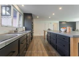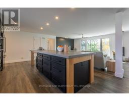 Tucked away at the end of a quiet crescent, 26 Lawrence Crescent is a beautifully renovated executive home that pairs modern luxury with a serene natural setting. Backing onto Rotary Park, this property offers privacy and everyday resort-style living. From the bold exterior and upgraded garage doors to the sun-filled, open-concept interior, every detail has been thoughtfully designed for comfort and style. At the heart of the home, a custom chefs kitchen showcases handcrafted solid maple cabinetry, dramatic concrete countertops, premium KitchenAid black stainless appliances (including a 36" induction cooktop), and a striking 12-foot island perfect for both entertaining and daily living.The living area is warmed by a sleek Jøtul gas fireplace and framed by expansive windows and patio doors overlooking the backyard. Just steps down, a 19' x 19' screened-in porch offers the ideal space to relax, read, or dine while surrounded by nature.The primary suite is a true retreat, featuring a sitting area, ensuite with oversized tile, and a walk-in closet with the potential to be converted into an additional bedroom. Two more bedrooms and a full bath complete the main level, while the fully finished lower level provides versatile living space with a full bathroom, fourth and fifth bedrooms, home office, storage, and the efficiency of a geothermal heating/cooling system.Step outside to a resort-style backyard with a heated 16' x 32' in-ground pool, outdoor shower, pool house and two garden sheds. With nearly 220 feet of width backing onto green space, this rare lot offers peace, beauty, privacy and accessibility..A rare opportunity to own one of Aylmer's finest homes; where craftsmanship, comfort, and nature come together. Measurements from iguide (id:61594)