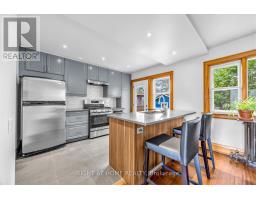 Pull up a chair and settle into this East End charmer - where timeless character meets everyday comfort. This well-maintained two-storey detached brick home blends original warmth with thoughtful updates, featuring a modern kitchen, open-concept dining, and a comfy living room with park views. Set on a rare 30-foot-wide premium lot, the property includes a detached garage currently styled as an outdoor entertainment space-perfect as-is, easily converted back, or reimagined as a future garden suite. The renovated kitchen shines with quartz countertops, breakfast bar, pantry cabinet with pull out drawers, pot lights and walk out to yard. The spacious living room offers hardwood floors, a fireplace, and a large picture window with a clear view. Upstairs, you'll find two generous principal bedrooms-both comfortably fitting king beds-plus a third, ideal for a child or home office, all with new carpeting. Unfinished full basement, waiting for you to expose its potential. Outside, enjoy your private backyard oasis with a beautiful garden filled with perennial flowers and plants, lots of little nooks for sitting, reading, relaxing and entertaining. Fenced yard great for kids or pets, outdoor garage makes great play space or hang out on rainy days. Recent updates include a new boiler system and tankless water heater (2025), ductless A/C (2020), and fresh paint throughout. Property overlooks park with wide open green space at your front yard, steps to Dentonia Park Tennis club, sports fields and a wonderful children's playground. Situated on a quiet tree lined street in a desirable family neighbourhood packed with local amenities! Home has a private drive with 3 car parking but easy transit access gives you an option to go carless. Just a short walk to Main or Victoria Park subway, street car hub, GO train, schools, community centre, library, parks, golf course, groceries, restaurants and shops along the Danforth. This home is ready for you - just move in and enjoy! (id:61594)