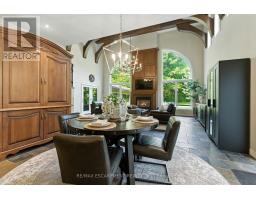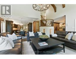 Timeless elegance awaits in the heart of Carlisle. This extraordinary estate blends refined sophistication with European charm, offering a lifestyle defined by comfort, craftsmanship, and distinction. From the moment you enter, you're greeted by soaring ceilings, rich stone accents, and a stunning great room with intricate beamed detailing. The chefs kitchen exudes traditional warmth, featuring top-of-the-line built-in appliances and thoughtful design for both everyday living and entertaining. At the heart of the home lies a vast Betz indoor pool and spa, framed by expansive windows that invite natural light and showcase serene views. The main floor also includes a tranquil primary suite oasis, designed for ultimate relaxation. Upstairs, four generously sized bedrooms are complemented by three full ensuites and a convenient laundry room, offering space and privacy for family and guests alike. The grand custom staircase leads to a fully finished lower level, complete with a kitchenette, wine tasting room, spacious recreation area, a fabulous gym, a three-piece bath, and an additional bedroom or flexible living space. Set on a breathtaking two-acre property surrounded by mature trees, this home offers a private composite deck perfect for enjoying morning coffee or evening cocktails in peaceful seclusion. A heated four-car garage adds practicality and luxury to the package. This is more than a home - its a true cottage alternative, combining rural tranquility with refined living. Lets get you home! (id:61594)