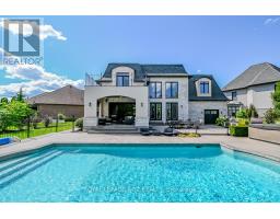 Welcome to this stunning custom-built two-story residence, offering over 6,000 sq. ft. of finished living space in the heart of wine country. This exceptional property blends timeless craftsmanship with modern luxury, creating a true masterpiece for refined living and entertaining. Step inside through the grand entry and be captivated by the 10-foot ceilings on both the main and second levels, accented with 8-foot doors and exquisite custom decorative mouldings. The 22-foot family room ceilings create an airy, impressive atmosphere, complemented by expansive windows that flood the space with natural light. At the heart of the home is a chef-inspired kitchen featuring professional-grade appliances, custom cabinetry, a large center island with seating, quartz countertops, a spacious walk-in pantry, and a butlers pantry for added convenience and storage. Designed with both function and style in mind, this space is perfect for everyday living and large gatherings.The home offers four spacious bedrooms and 4.5 baths, including a luxurious primary suite with spa-like ensuite.Finishes include hardwood floors and porcelain tiles throughout, enhancing both elegance and durability.Designed for hosting, the home boasts two fireplaces one indoors for cozy evenings and another outdoors for gatherings. The custom bar and finished basement provide a stylish entertainment hub, complete with a private theatre room for the ultimate cinematic experience.Step outside to your own backyard oasis featuring a large pool, hot tub, covered deck, fire pit area, and a full irrigation system, making outdoor living as effortless as it is enjoyable. (id:61594)