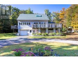1.5 storey wood sided home featuring almost 1800 sq ft Lot is 231 x 301 feet Conveniently located near several lakes for boating or fishing, 2 mins from Cloyne offering school from JK to grade 12 , 10 mins to bon echo park and to local grocery store & pharmacy ,an hour from Napanee or Belleville. Main Floor: Great room with lofted ceiling and skylight, providing a spacious and bright atmosphere. Open concept dining/living room with 2 patio doors, one leading to a wrap-around deck at the front, the other to a smaller deck off dining room, offering easy access to outdoor living spaces, enhancing indoor-outdoor flow. Kitchen with breakfast island giving more counter space and ample cupboards, and two windows overlooking the backyard for a pleasant view. Laundry room for added convenience. 2 pc guest bathroom. Main floor bedroom with ensuite and walk-in closet, additional patio door to main deck providing comfort and privacy. Mudroom leading to another good-sized deck into the backyard, a convenient entry point and transition space. Upstairs: 2 generous-sized bedrooms, offering ample space for family members or guests. Bathroom with a double sink vanity & stand alone shower, providing functionality and comfort. Catwalk overlooking living/dining room, adding architectural interest and visual appeal while providing space for kids to do homework. Basement: Single car garage for parking and storage. Additional space to add a rec room or other amenities, allowing for customization according to the homeowner's needs. Walkout to the yard, providing easy access to outdoor areas a space for gatherings or relaxation. Exterior: Surrounded by just under 2 acres of wooded space, offering privacy and a tranquil setting. Updates include new propane high efficiency furnace, central air and owned hot water heater all in 2021. This house combines modern amenities with natural surroundings, creating an inviting and comfortable living space ideal for everyday living and entertaining. (id:61594)