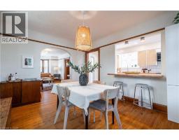 Welcome to 26 Weir Street South, a charming and character-filled 1.5 storey brick home offering1,326 sq ft of move-in ready living space. From the moment you step inside, you'll be captivated by the timeless original woodwork, including the elegant staircase, classic bannisters, solid wood doors, and vintage baseboards that echo the home's historic charm. Stunning stained glass windows in both the foyer and dining room add a unique touch of elegance and warmth. The main floor features a spacious living room with a large bay window that floods the space with natural light. The formal dining room is perfect for hosting, while the bright eat-in kitchen includes a breakfast bar for casual meals and conversation. Sliding patio doors lead to a generous covered deck, ideal for entertaining guests. Step outside to a private, fully fenced backyard, a tranquil and beautifully landscaped retreat. Whether you're relaxing with a morning coffee, hosting a summer barbecue, or letting the kids play freely, this peaceful outdoor space offers something for everyone. Upstairs, you'll find three comfortable bedrooms and an updated 4-piece bathroom. The basement adds even more living space with a cozy rec room, a 2-piecebath, and a separate side entrance, offering in-law suite or rental potential. A paved driveway with parking for up to three vehicles, leads to a detached single-car garage with hydro, perfect for a workshop or man cave. Located in a friendly, family-oriented neighbourhood just steps from Montgomery Park, and close to schools, restaurants, shopping, and public transit. Quick highway access makes commuting to Toronto or Niagara a breeze. Don't miss your chance to own this beautiful, well-maintained home, its full of character, comfort, and charm. Book your showing today! (id:61594)