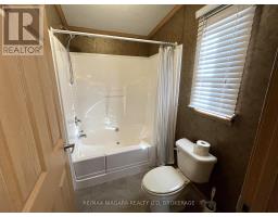 Located in Parkbridge's Black Creek Adult Lifestyle Community in Stevensville, ON. This gated neighbourhood is known for its peaceful natural surroundings-mature trees, a tranquil pond and creek, and sweeping countryside views-yet remains only minutes from the QEW, the U.S. border, and Lake Erie's shoreline. At the centre of it all is the impressive 12,000 sq ft Recreation Centre, offering heated indoor and outdoor pools, a hot tub, sauna, library, craft and games rooms, kitchen facilities, plus indoor and outdoor shuffleboard courts. Outdoor enthusiasts will appreciate the tennis courts, scenic walking and biking trails, and an active social calendar with options such as yoga, bingo, aerobics, and line dancing. This 1,092 sq ft bungalow features an open-concept layout ideal for comfortable living. The bright eat-in oak kitchen includes tile flooring and an island, flowing into a spacious living/dining area finished with vinyl plank flooring. Sliding doors lead to a generous back deck. The home offers two bedrooms and two full bathrooms, including a 3-piece bath with shower and 5-piece ensuite with double sinks and a walk-in closet. Additional highlights include front and rear decks, a full-size storage shed, and a double driveway. Located just straight down Oriole to Buffin from the main entrance. This is a land-leased community with an estimated monthly site fee of $949.14 (including taxes); water is billed quarterly at approximately $80. Recent updates include a new roof (2023) and a microwave and dishwasher installed in November 2024. (id:61594)