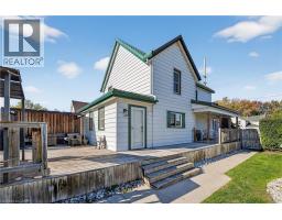 MODERN LIVING, SMALL-TOWN HEART … 261 Gilmore Road in Fort Erie sits on a large, L-SHAPED corner property that radiates curb appeal with its classic wrap-around porch and thoughtfully updated interior. RENOVATED in 2021, this 2-storey home strikes the ideal balance between modern convenience and timeless character, offering space for both relaxation and entertaining. Step through the welcoming foyer into a bright, OPEN CONCEPT living and dining area, where pot lights and LVP flooring create a warm and inviting flow. The L-shaped layout maximizes both light and space, leading into a stylish kitchen featuring a peninsula breakfast bar w/stone countertop, sleek black stainless steel appliances, and a large pantry – an everyday chef’s kitchen in both design and practicality. Just off the back MUDROOM, the MF laundry and 3-pc bath add everyday ease, while a main floor den offers flexibility as a third bedroom or home office. Upstairs, find two spacious bedrooms, including a spacious bedroom with LOFT ACCESS and another with a large closet, complemented by a modern 3-pc bath. The lower level provides ample storage, a cellar, and two crawl spaces for utilities. Step outside to your private, fully fenced BACKYARD OASIS, featuring an above-ground pool, hot tub, and hard-top gazebo on a wrap-around deck - perfect for summer evenings under the stars. A flagstone firepit and garden pond complete this SERENE RETREAT. With a U-shaped driveway accommodating up to six vehicles, practicality meets pleasure at every turn. Recent updates include metal roof & metal siding plus a 2021 furnace & A/C and for peace of mind. Ideally located near parks, the library, Fort Erie Racetrack, golf & country clubs, and the Peace Bridge, this home offers the best of small-town living with modern style and unbeatable convenience. CLICK ON MULTIMEDIA for video tour, drone photos, floor plans & more. (id:61594)