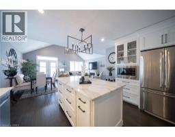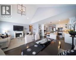 Welcome to 261 Schooner Drive in beautiful Port Dover — a stunning end-unit freehold (POTL) townhome offering stylish, low-maintenance bungalow living. This 2-bedroom, 2-bathroom home features a bright, thoughtfully designed layout just minutes from the lake, beach, golf and the charming shops and restaurants in their downtown core. The main floor offers a desirable open-concept design, enhanced by vaulted ceilings (LR/ DR), engineered hardwood flooring and California shutters throughout the principal rooms and bedrooms. The inviting front entrance leads into an upgraded white shaker kitchen complete with quartz countertops, subway tile backsplash, under-cabinet lighting, stainless steel appliances including a 5-burner gas stove, and a spacious centre island with pendant lighting. The kitchen flows seamlessly into the dining area and great room, creating an ideal space for both everyday living and entertaining. Patio doors extend the living space to a private 16' x 12' concrete patio with no current rear development behind. The spacious primary bedroom offers vaulted ceilings, a walk-in closet and a beautifully appointed ensuite with soaker tub and frameless glass shower. A second bright bedroom and full guest bathroom provide comfortable space for visitors or a home office. Main floor laundry and inside access to the single-car garage add everyday convenience. Ideally located near The Links at Dover Coast Golf Club, David’s Restaurant & Spa and the Port Dover waterfront, this meticulously maintained bungalow is perfect for downsizers, retirees or anyone seeking turnkey living in a sought-after lakeside community. Enjoy life by the lake! It's a serious upgrade in lifestyle. (id:61594)