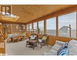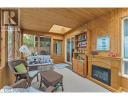This charming 1½-storey home offers the perfect blend of comfort, character, and stunning water views with direct access to your own hard sand beach with crystal clear water. With 4 bedrooms and 2 full bathrooms, including a private second floor primary suite featuring a 3-piece ensuite and walkout to a deck overlooking the lake, this home is designed for relaxed living and entertaining. The spacious layout includes a generous dining room—perfect for hosting family dinners or entertaining guests and the living area is warm and inviting with a wood-burning fireplace and views of the water. The kitchen is perfectly positioned, offering functionality with scenic views that make time spent there a pleasure. A bright, screened-in Muskoka room with skylights extends the living space and offers a peaceful spot to unwind, also an ideal spot for morning coffee or evening gatherings, while the large waterside deck is perfect for entertaining or soaking up the sun and offers direct access to a sandy beach perfect for swimming, paddle boarding and water play. High efficiency gas boiler system heating. Conveniently located just minutes from shopping, parks, and the GO Train, this beautiful lakeside home combines year-round comfort with vacation-style living. (id:61594)