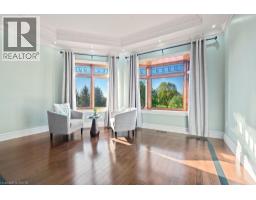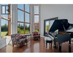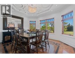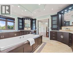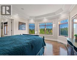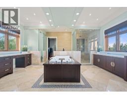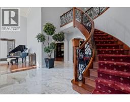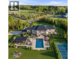 Experience Elevated Living at this Spectacular North Burlington Masterpiece in an Exclusive Enclave of Prestigious Estates. Set on a serene 2.5-acre lot, this luxurious home offers approx. 8,700 SF of exquisitely finished living space, where sophistication meets comfort and innovation. Designed for discerning buyers, this 4-bedroom, 7-bathroom residence delivers the ultimate lifestyle. Gourmet custom kitchen by Gravelle, with extensive solid wood cabinetry, granite counters, hidden doors to large pantry and high-end SS appliances. The walk-out basement is a next-level entertainment hub with Star Wars Sci-Fi theme. Featuring a cutting-edge games room, a dedicated home theatre with immersive 7.1 Dolby surround sound, 12' screen and starlight ceiling. Including flexible space that could easily serve as a 5th bedroom, complete with generous storage. Step outside to a peaceful retreat—gather around the stone fire pit or take a scenic stroll along the nearby Bruce Trail. Despite the private, nature-filled setting, you're only minutes from the schools and amenities of Burlington, blending secluded luxury with urban convenience. This remarkable home defines upscale living. Whether you're hosting grand celebrations or enjoying quiet moments, this is where modern luxury meets timeless tranquillity Please click on the more information link for all luxury features and all inclusions and click on more photos for floorplans. 10+++ (id:61594)