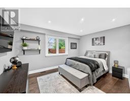 Where style meets substance, offering not only stunning renovations but also extensive updates to core systems for true long-term value. This beautifully upgraded 4-level sidesplit features 4 bedrooms, 3 baths & landscaped 150-ft lot. Imported Italian porcelain & engineered hardwood floors, chandelier lighting & inside access to oversized garage with shelving and large picture windows w/remote blinds throughout. A fully rebuilt kitchen (to the core) with quartz waterfall island, Italian porcelain floors, pot lights, under-cabinet lighting. Oversized sliding doors to covered wood deck and private treed backyard. Living & Dining areas brag with crown moulding, oversized windows, pot lights, upgraded lighting, wall sconces, dimmer switch & original decorative plaster ceiling for the right touch of nostalgia. Hardwood stairs w/painted risers & wrought iron pickets take you to the Upper level with luscious floors, upgraded lighting & electronic blackout blinds. Primary bedroom with double closet & backyard views, two additional bedrooms plus fully rebuilt 3-piece bath w/ Blue Italian porcelain, mosaic shower floor, glass shower doors & large vanity. Lower level with custom laundry room featuring cabinetry, quartz counters, undermount sink & a Home theatre with 95-inch projection screen, smart projector, included L-shaped seating, party lights & pot lights w/dimmer. A recently added full bath with Italian porcelain, suspended cabinetry & glass shower. Ample storage includes broom closet, cantina, expansive crawl space & furnace room. Exterior landscaped front and rear yards, numerous sitting areas, large shed, mature trees, driveway for 6, new insulated garage door. Major updates include furnace, AC, humidifier, all windows, front door, sliding door, eaves & downspouts, roof, interior doors & trim, plumbing & HVAC systems. Electronic blinds, smart home security, freshly painted. Move-in ready with comfort, efficiency, and confidence for years ahead. See 3D Tour! (id:61594)