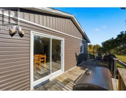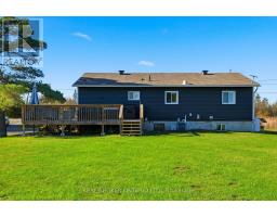 Discover modern country living in this beautifully updated high ranch, set on just over an acre of peaceful landscape. Completely transformed in 2023, this home features new vinyl siding with stonework and 2" energy board, plus new ceilings, floors, and two stylishly updated bathrooms. The showpiece kitchen features shaker-style cabinetry, elegant finishes, and a bright dining area with patio doors leading to a spacious deck, perfect for entertaining or relaxing in the hot tub. The inviting living room offers warmth and comfort, ideal for everyday living. With three bedrooms upstairs and an additional bedroom on the lower level, the layout provides flexibility for family and guests. A detached, fully spray-foamed, heated, and cooled garage adds practicality and value. Enjoy the perfect balance of style, comfort, and privacy just minutes from the heart of Merrickville. (id:61594)