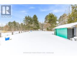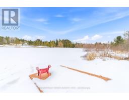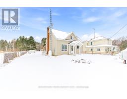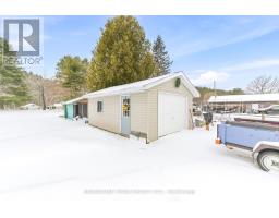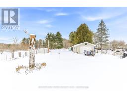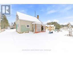 Welcome to life in the heart of Round Lake Centre. This inviting home sits on a level, beautifully maintained lot with established gardens, a peaceful backyard patio, and a walking path that leads to a little pond - perfect place to raise a family. Outside, you'll appreciate the detached garage, additional storage building, and plenty of space to enjoy the outdoors. Unwind by the water using the dock and paddleboat, or take a short stroll down to the local store and public boat launch on Round Lake. Inside, the home features a bright open-concept kitchen, dining, and living area, creating a welcoming space for everyday living and entertaining. The primary bedroom and full bathroom are conveniently located on the main level, along with a family room that could easily be converted back into an additional bedroom if desired. The home is well equipped for year-round comfort with a wood stove, forced air propane furnace, central air conditioning, on-demand hot water, and a backup generator for added peace of mind. The upper level provides even more living space along with a second bedroom, making it ideal for family or guests. With its walkable village location, functional layout, and beautiful outdoor setting, this property is a wonderful opportunity to enjoy the laid-back lifestyle Round Lake is known for. (id:61594)