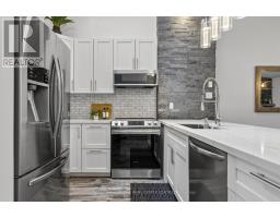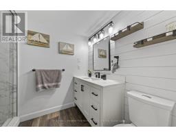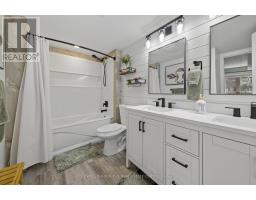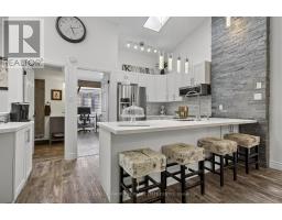 $544.32 MonthlyBeautifully renovated 3-bedroom, 3-bathroom Harbourside townhome offering approximately 1,448 sq ft of updated living space in the heart of Collingwood. Built in 1990 and tastefully renovated throughout, this home blends modern finishes with a peaceful, nature-filled setting just steps from Georgian Bay, Cranberry Marina, golf, trails, and only minutes to Blue Mountain.The main level features a spacious laundry closet, a serene primary bedroom with renovated ensuite, and a second large bedroom with its own beautifully updated ensuite and walkout to a private backyard terrace surrounded by mature trees.Upstairs, the open-concept living space showcases vaulted ceilings, a stone gas fireplace, modern kitchen with stainless steel appliances, quartz counters and island, plus a bright dining area with walkout to a private deck nestled in the trees. A third bedroom with semi-ensuite completes the upper level.Perfect for year-round living, a weekend retreat, first-time buyers or downsizers. Includes one parking space plus ample visitor parking. Enjoy the best of Collingwood's four-season lifestyle just minutes from skiing, waterfront, shops, and restaurants. (id:61594)
