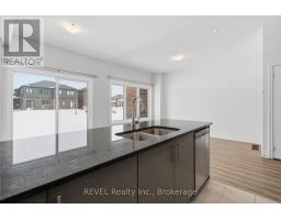 This pristine, two-year-old freehold townhouse in the Hunter's Pointe community offers a clean, move-in-ready layout with 3 bedrooms and 2.5 bathrooms. The home features a stone-covered front porch and an open-concept main floor highlighted by a stylish kitchen with quartz countertops and newer stainless steel appliances. Large windows throughout provide plenty of natural light, and solid wood stairs lead to the second level where you'll find a spacious primary bedroom with a walk-in closet and a 3-piece ensuite. Functional additions include interior garage access and a large, unfinished basement with laundry and a bathroom rough-in, offering great potential for future storage or living space. Located near the Welland Canal, the property is steps away from parks and trails while remaining conveniently close to the Seaway Mall, groceries, golf courses, and Highway 406 for easy commuting. (id:61594)
