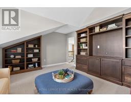 Welcome to 27 Black Walnut Crescent, nestled in one of Ancaster's most sought-after detached condo lifestyle communities. This exclusive private-road enclave offers the perfect blend of privacy, prestige, and low-maintenance living, with exterior upkeep professionally managed so you can focus on enjoying your home and surroundings. Ideally located, you're just minutes to major highways, shopping, dining, and everyday conveniences. Inside, the home impresses with a bright, open-concept design highlighted by vaulted ceilings and a dramatic second-floor loft overlooking the main living space, creating an airy, sophisticated atmosphere. Large windows throughout flood the home with natural light, enhancing the sense of space and warmth. The custom chef's kitchen is both stylish and functional, featuring quartz countertops, a walk-in pantry, abundant prep space, and a seamless flow between counters and centre island, ideal for entertaining or everyday living. The adjoining family room offers built-ins, a gas fireplace, and a walk-out to a private patio. The upgraded staircase with modern metal pickets leads to a versatile second floor with theatre room with built-in shelving, perfect for movie nights, a home office, additional bedrooms or lounge space. Designed with convenience in mind, the home offers up to four spacious bedrooms, including a main-level primary suite complete with a walk-in closet and a generous 5-piece ensuite bath. This is an ideal layout for those seeking the ease of main floor living. The unfinished basement offers outstanding potential, excellent for storage today and ready for your custom vision in the future. This is a rare opportunity to enjoy space, style, and turnkey convenience in a prestigious, maintenance-supported Ancaster community. (id:61594)