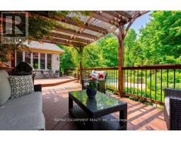 The pinnacle of privacy. Discover a rare sanctuary where extreme seclusion meets modern sophistication. Tucked away at the end of an exclusive cul-de-sac in the village of Carlisle, this 2.12-acre estate is surrounded by forest and farmland, offering a level of tranquility and security increasingly rare in the GTA. Designed for the modern family and work-from-home lifestyle, this residence offers over 7,791 sq ft of timeless design. A soaring two-storey foyer sets the tone, complemented by two dedicated libraries or offices ideal for remote executives or business owners. The expansive floor plan transitions seamlessly from productive workdays to refined entertaining and family living. The light-filled chef's kitchen features custom cabinetry, soft-close drawers, a wood island, marble countertops, premium appliances, and a generous breakfast area. A vaulted great room opens to an oversized sunroom with panoramic views of the private backyard. The upper level offers a secondary library or office leading to the luxurious primary suite with spa-inspired ensuite, soaker tub, rain shower, and expansive dressing room, along with three additional spacious bedrooms and a five-piece bath. Meticulously updated for complete turn-key peace of mind, the home features a high-efficiency furnace and AC (2024), an upgraded chef's kitchen with most appliances replaced in 2024, EV charging in the three-car garage, and a raised vegetable garden. Resort-style backyard living includes a saltwater gunite pool with cascading rock waterfall, hot tub, expansive deck, and pergola. The fully finished walk-up lower level with private entrance offers exceptional versatility for a multi-generational suite, guest wing, or private wellness studio. Experience the stillness of your private two-acre forest in all four seasons. LUXURY CERTIFIED. (id:61594)