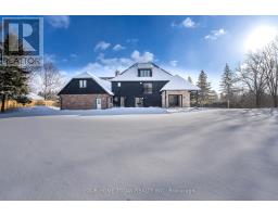 Situated in a quiet executive enclave and set well back from the road on a private and breathtaking, 1.5 acre lot with no homes directly behind, this striking custom-built home offers classic design enhanced by exceptional modern updates. Extensively renovated over the past five years with designer flair and meticulous attention to detail, the home showcases gorgeous, engineered hardwood and ceramic flooring, abundant pot lighting and a consistent upscale aesthetic throughout. At the heart of the home is a chef-inspired kitchen featuring an oversized island with waterfall edge and seating, quartz countertops and premium appliances. Floor-to-ceiling cabinetry with glass accents and a walkout to the patio complete this stunning space. The inviting family room offers a toasty fireplace framed by custom built-in shelving, while the combined living and dining rooms impress with vaulted ceilings, expansive windows, and a striking fireplace set against an eye-catching feature wall. A sleek glass-railed staircase leads to the upper level where four generously sized bedrooms and a loft await. The upper foyer is both stylish and functional, featuring built-in organizers for added storage and a large window that fills the space with natural light. The primary retreat includes a walk-in closet with custom organizers, a decadent ensuite and access to a finished loft area above the garage - perfect as a sitting room, office or studio. A second primary suite enjoys ensuite access to another beautifully appointed bathroom and built-in closet organizers. Two additional bedrooms share a lavish main bath. The unfinished basement offers a wide-open canvas ready to be customized to suit your needs. Parking is plentiful with space for 10 vehicles in the driveway plus an attached 3 car garage. Ideally located close to schools, parks, trails, recreation centre, shopping and more with easy access to main roads for commuters. This is executive living at its finest! (id:61594)
