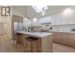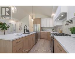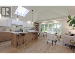 This beautifully renovated raised bungalow blends timeless style with modern convenience. The open-concept main floor showcases cathedral ceilings with a skylight, pot lights, and a designer kitchen featuring Canadian-made custom cabinetry with LED lighting, a 7-ft island, KitchenAid stainless steel appliances including a gas range, pot filler, and quartz countertops. Luxury Canadian hardwood floors flow throughout, while the bathrooms offer heated tile floors, custom vanities, LED mirrors, and a spa-like main bath with custom cabinetry. The home includes three spacious bedrooms, main floor laundry (plus a roughed-in option), and a separate side entrance to the fully finished lower level with above-grade windows, high-quality vinyl flooring, its own laundry, and a full suite of stainless steel appliances; ideal for a one-bedroom in-law suite. Recent upgrades include spray foam insulation at the front of the home, all new wiring with ESA certification, a new roof (2025), a new garage door, fiberglass front door, custom carport finishing, soffit exterior lighting, stair lights, and an engineers letter for the ceiling feature. Exterior enhancements include stucco finish, new railings, professional landscaping with new walkways and stairs, and parking for up to six vehicles. Central air, an Ecobee smart thermostat, and thoughtful updates throughout complete this move-in-ready home. listing information (id:61594)