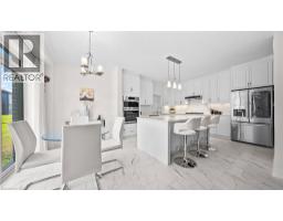 Discover elevated contemporary living in this nearly new Net Zero Ready home, ideally situated in the highly sought-after Harvest Park community. Offering 4 bedrooms and 3.5 bathrooms, this thoughtfully customized home showcases over $150,000 in premium upgrades, seamlessly blending sophisticated design with sustainable efficiency. The main level features a sun-filled open-concept layout anchored by a chef's kitchen complete with high-end appliances, custom ceiling-height cabinetry, and effortless flow into the dining area and great room-ideal for both everyday living and entertaining. A dramatic waffle ceiling adds architectural interest, while a powder room and convenient main-floor laundry complete the space. The main ensuite has a walk-in closet and a spa-inspired ensuite with expansive feature window. Impressive 9-foot ceilings enhance the sense of openness throughout, extending into the professionally finished basement. Upstairs, you'll find four generously sized bedrooms plus a versatile family room that can easily function as a fifth bedroom or home office. The primary suite offers a private retreat with a walk-in closet and a spa-inspired ensuite. The finished lower level expands the living space with a spacious recreation area, full bathroom, and two storage rooms. With rough-ins for a kitchen, sink, and laundry, the basement presents excellent potential for a home theatre, in-law suite, or future secondary unit. Comprehensive soundproofing-including the garage ceiling-ensures exceptional peace and comfort. Set against the serene backdrop of open green space, yet just minutes to Highway 401 and the conveniences of South Kitchener, this Harvest Park home delivers the perfect balance of tranquility and accessibility. (id:61594)
