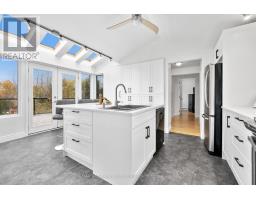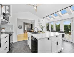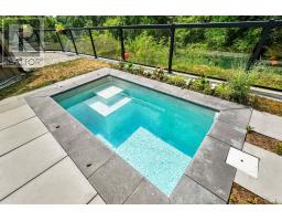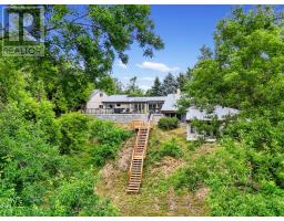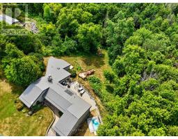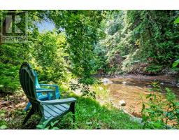 Tucked amid 1.74 acres of serene, forested landscape, this one-of-a-kind home offers the perfect blend of charm, privacy, and natural beauty. Featuring a lower-level walkout, private deck off the primary suite, and a backyard oasis with a plunge pool and creek access, it's a true retreat just minutes from Warkworth's eclectic main street. French doors open into a spacious living room with vaulted ceilings and a built-in media unit. The bright, airy kitchen impresses with its cathedral ceiling, wall of windows, skylights, large island with breakfast bar, tile backsplash, matching appliances, and ample cabinetry. The adjoining dining area features a cozy wood stove and a walkout ideal for alfresco dining and extending your living space outdoors. The main floor also includes two well-appointed bedrooms, a full bathroom, and convenient laundry. The lower-level primary suite is a private haven, complete with a walk-in closet, skylit ensuite, and a walkout to a secluded deck, perfect for quiet morning coffees. A spacious rec room with a stone-surround fireplace, wall of windows, and direct access to the patio offers the ideal setting for relaxation or entertaining. Outside, the sprawling patio overlooks lush green space and features areas for dining, lounging, and enjoying the outdoors. Beyond the patio, the in-ground plunge pool and tranquil creekside setting invite endless hours of retreat and exploration. Complete with a garage and additional storage, this property combines rustic charm with modern comfort, offering a peaceful escape close to amenities. (id:61594)
