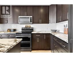Beautiful 3 bedroom, 2.5 bathroom townhome with over 2,200 sq ft of finished living space. Bright open concept main floor with modern flooring, pot lights, and spacious living and dining areas. Stylish kitchen with dark cabinetry, stone countertops, stainless steel appliances, subway tile backsplash, and large island with breakfast bar. Upper level offers a generous primary bedroom, two additional bedrooms, and convenient second-floor laundry. Finished lower level provides extra living space for a rec room, office, or gym. Private fenced backyard with deck and patio area. Attached garage with driveway parking. Great location close to parks, schools, shopping, and quick highway access. (id:61594)