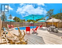 Beautifully renovated 3-bedroom, 3-bathroom waterfront bungalow located on a quiet street just 10 minutes to Highway 401 and 15 minutes to all amenities. This move-in-ready home offers a rare combination of comfort, privacy, and income potential. Enjoy a swimmable sandy shoreline with a large 40-ft roll-in dock-perfect for boating, swimming, and relaxing by the water. Inside, the home features a bright open-concept layout with a spacious, updated kitchen complete with stainless steel appliances and stunning water views. The cozy living room with woodstove flows into the dining area and den, creating an inviting space for everyday living and entertaining. There are three bright bedrooms and two full bathrooms, including a luxurious main bath with a walk-in shower, wall jets, and a rainfall showerhead. A sunroom with a second woodstove leads to a fully fenced backyard oasis featuring a heated on-ground pool, hot tub, two western red cedar gazebos, outdoor 2-piece bathroom, and two fire pits-ideal for hosting or unwinding in privacy. Additional highlights include a 4-car garage, triple-wide driveway, large tiled foyer with garage access, and front patio. This property is immaculate and offers excellent potential for short-term rental income such as Airbnb or VRBO. A perfect waterfront retreat or investment opportunity-don't miss out. (id:61594)