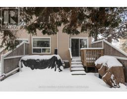 Welcome to this beautifully updated end-unit condo townhouse in the highly sought-after Centrepointe neighbourhood. Surrounded by mature trees, this bright and private home offers a peaceful setting with added natural light-an ideal retreat at the end of the day. The spacious layout features four bedrooms, including three on the upper level and a full bedroom on the main floor, perfect for guests, a home office, or multigenerational living. The oversized primary bedroom offers a comfortable retreat with plenty of space to unwind. Hardwood flooring flows throughout, creating warmth and continuity, while the updated kitchen offers a functional layout with a convenient breakfast bar-ideal for casual meals, homework, or morning coffee. Renovated upstairs bathrooms add modern comfort and style, enhancing the home's turnkey appeal. Enjoy cozy evenings by the electric fireplace in the living room or the wood-burning fireplace in the basement, offering warmth and versatility year-round. Thoughtfully updated and beautifully maintained, this calm and welcoming home allows you to simply unpack and enjoy. Ideally located just steps from Centrepointe Park, the library, transit, and close to shopping, schools, and recreation. Be sure to watch the video attached to this listing! (id:61594)